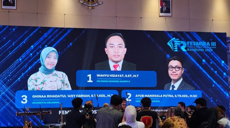 Dua akademisi Program Studi Teknologi Radiologi Pencitraan (TRP) Fakultas Vokasi Universitas Airlangga (UNAIR), Ayub Manggala Putra S.Tr.Kes., M.Sc. dan Ghinaa Rihadatul ‘Aisy Farhah S.Tr.Kes, meraih penghargaan Best Poster 3 dan Best Poster 2 pada ajang International Conference Radiografer FESMIRA III (Festival Ilmiah Radiografer Indonesia). Kegiatan ilmiah ini diselenggarakan di Harris Hotel & Conventions Festival Citylink, Bandung, pada 23 hingga 25 April 2026.