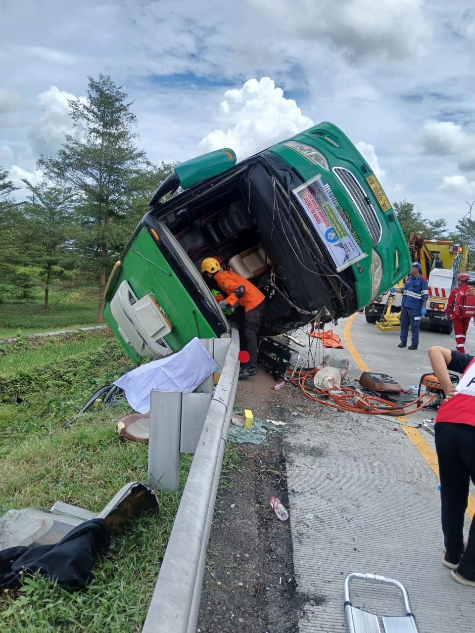 Bus Wisata Rombongan Warga Semarang Terguling di Tol Pemalang, Empat Penumpang Meninggal Dunia