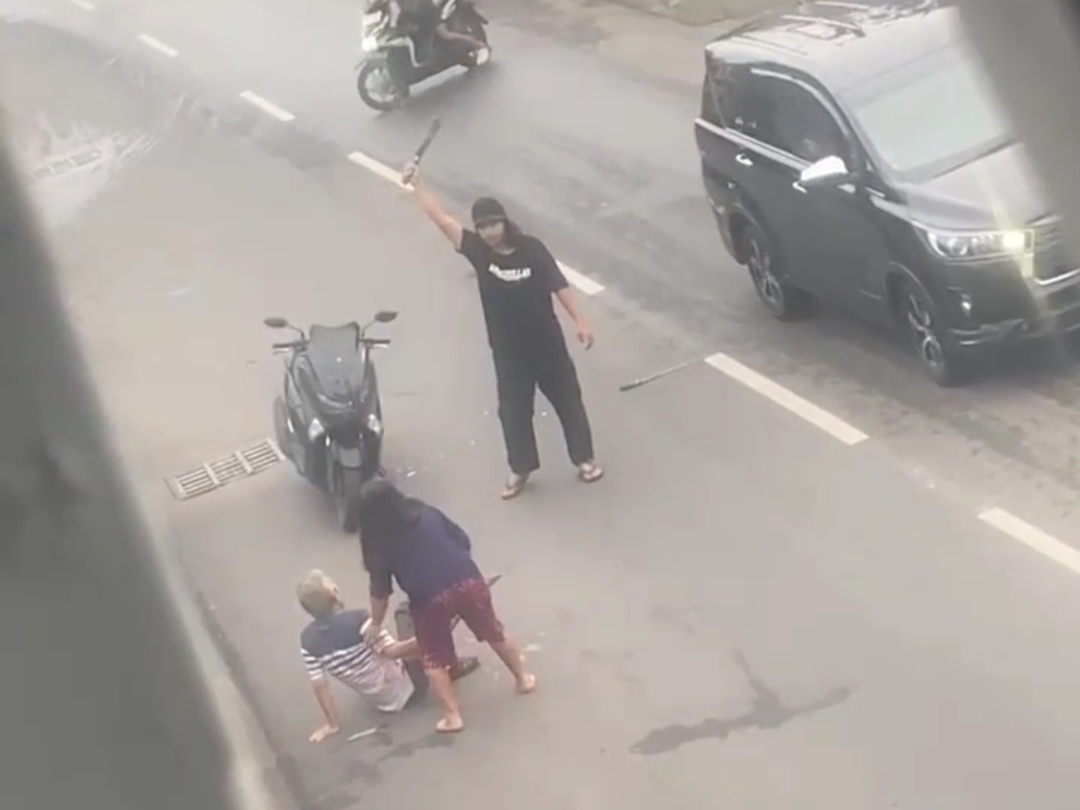 Peristiwa ini sempat terekam dalam video yang beredar di media sosial. Dalam rekaman tersebut terlihat dua pria membawa senjata tajam. Salah satu di antaranya terjatuh, sementara pria lainnya masih berdiri. Tak lama kemudian, dua wanita datang untuk melerai sebelum pelaku meninggalkan lokasi menggunakan sepeda motor.