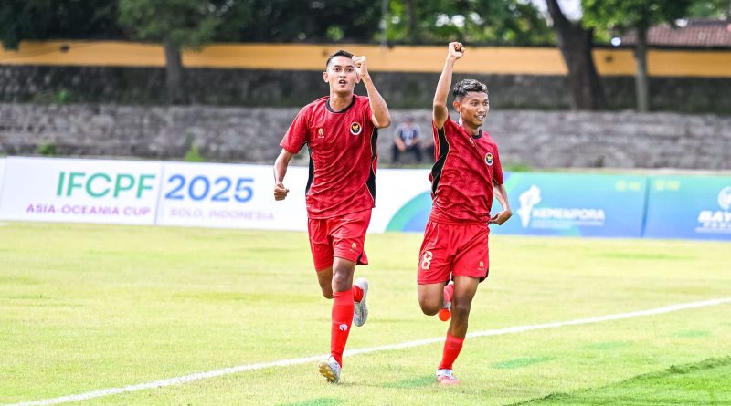 SOLO — Tim sepak bola cerebral palsy Indonesia mengawali langkah di IFCPF Asia-Oceania Cup 2025 dengan kemenangan mengesankan. Bertanding di Stadion Sriwedari, Minggu (16/11/25) pagi, skuat Merah Putih menaklukkan Australia 2-1 dalam laga yang berlangsung penuh intensitas.