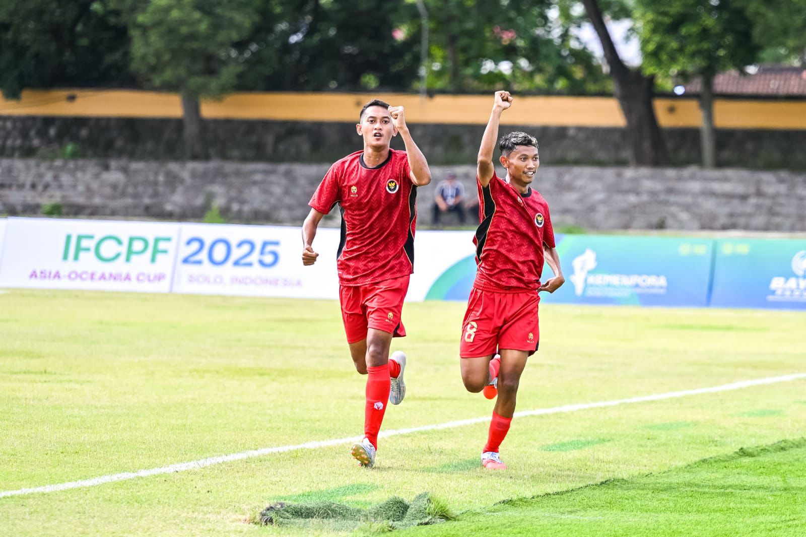 SOLO — Tim sepak bola cerebral palsy Indonesia mengawali langkah di IFCPF Asia-Oceania Cup 2025 dengan kemenangan mengesankan. Bertanding di Stadion Sriwedari, Minggu (16/11/25) pagi, skuat Merah Putih menaklukkan Australia 2-1 dalam laga yang berlangsung penuh intensitas.