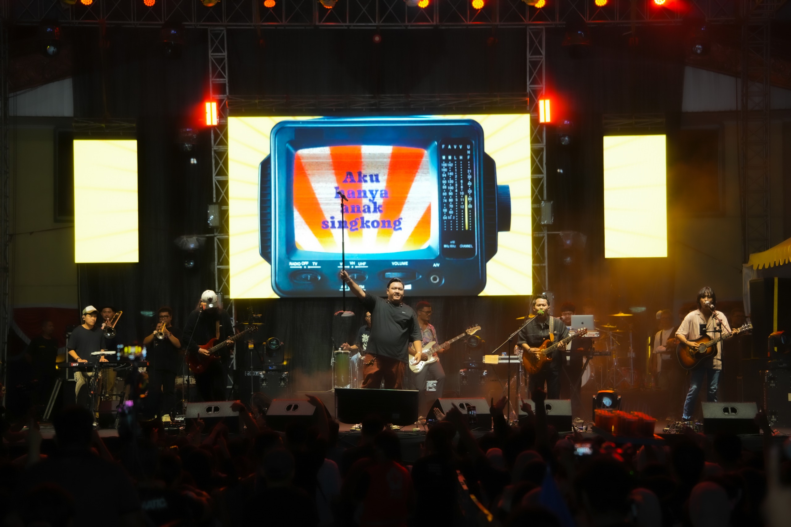 Antusiasme penonton semakin memuncak ketika Rektor UNS beserta jajaran pimpinan turut naik ke atas panggung dan bernyanyi bersama membawakan lagu Jogja Istimewa. Momen kebersamaan ini disambut sorak sorai ribuan penonton, menciptakan suasana hangat, akrab, dan penuh kegembiraan, sekaligus menjadi salah satu highlight dalam perayaan Dies Natalis ke-50 UNS.