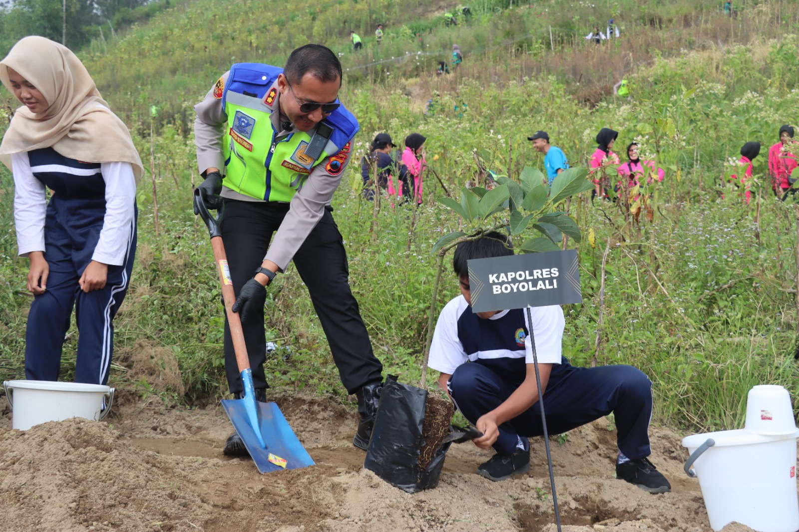 Kegiatan tersebut dihadiri Wakil Bupati Boyolali Dwi Fajar N yang mewakili Bupati Boyolali, Kapolres Boyolali AKBP Rosyid Hartanto, perwakilan Dandim Boyolali melalui Danramil Cepogo, Perhutani Telawah, Ketua Pengadilan Negeri Boyolali, Kepala Dinas Lingkungan Hidup Kabupaten Boyolali, Ketua Bhayangkari Cabang Boyolali beserta jajaran, unsur Muspika Cepogo, jajaran Polres Boyolali, pelajar SMA Negeri 1 Cepogo, serta masyarakat Desa Jombong.