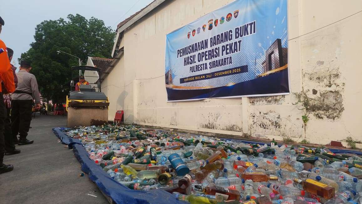 “Barang bukti minuman beralkohol yang dimusnahkan hari ini merupakan hasil Operasi Pekat. Tujuannya untuk menekan gangguan kamtibmas serta menciptakan rasa aman dan nyaman bagi warga Kota Solo,” ujar Kombes Pol Catur.
